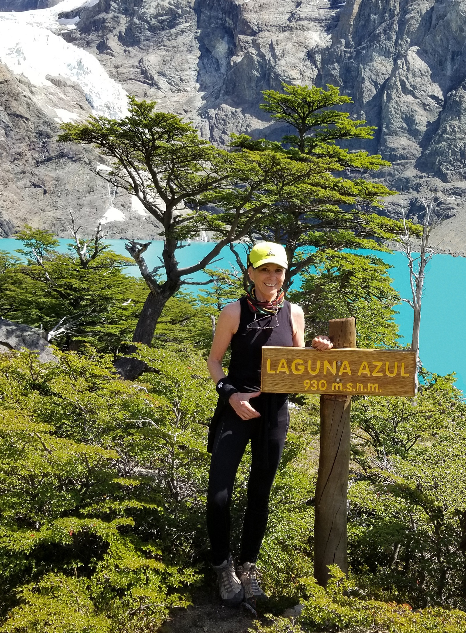 (photo below is Jean at Laguna Azul in Argentina in 2020; click for a larger version)